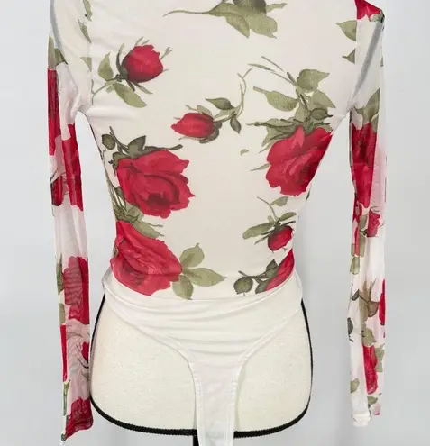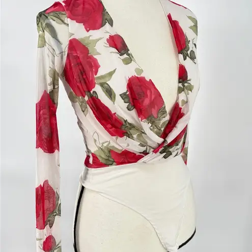 Brand: Windsor • Style: Floral Passion Surplice Mesh Thong Bodysuit • Color: Red/White with ivory... Show more