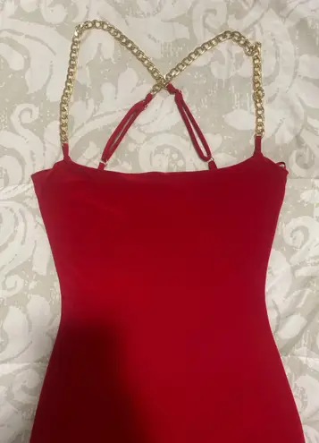Beautiful gold chain adjustable straps. Nice slit up the side, very soft and stretchy material.