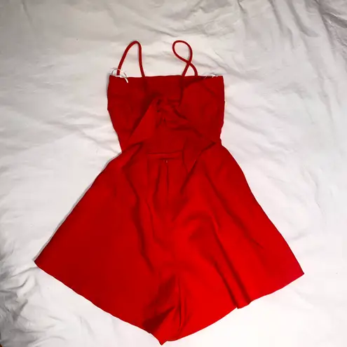 condition: excellent, worn once details: scarlet red orange spaghetti strap romper with bow tie back... Show more