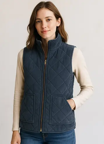 Brand new Wishlist blue quilted vest featuring a soft corduroy outer and smooth satin-like lining. D... Show more