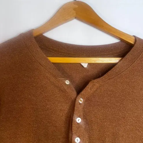 Rust orange or brown Vneck, button detail, long sleeve, pullover Polyester blend Pit to pit 28 Leng... Show more