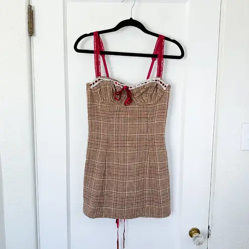 With Jean Ryder Mini Dress Plaid Brown Check | Corset Lace-Up, Sweetheart Neckline 1-2 day shipping! ✨ Step out in style with the With Jean Ryder Mini Dress in a classic brown plaid. This standout mini features a sweetheart corset-style bodice with a wired bust cup, delicate lace trim, and a romantic lace-up ribbon back for a custom fit. The Ryder Dress is known for its flattering silhouette and intricate detailing, making it perfect for parties, brunch, or a night out. Color: 'Brown Check' Brand: With Jean Retail: $239 Size: Small • Pit to pit: 15" • Length: 30" Keywords: mini dress, brown mini, flirty, Y2K, trendy, going out, party dress, ruched, bodycon, summer dress, festival, casual chic, influencer style, Gen Z, hot girl summer - summer - vacation - beach - tropical - Europe - Italy - picnic - patio - coastal - brunch - girls trip - Stylish dinner dates - champagne with the girls - garden parties - bottomless brunches - vacays The item comes from a smoke-free, pet-friendly home.