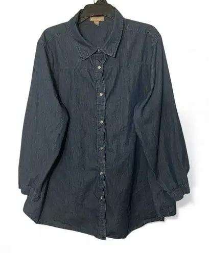 Woman Within 2x Denim Button Up Shirt Collared Neck 3/4 Sleeve Cotton Blue - $16 - From Denise