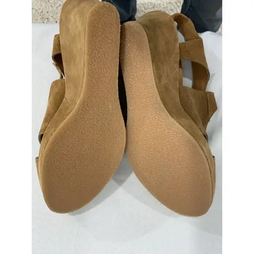 Elevate your summer style with these beautiful Cordani Calzature slingback 4” wedge sandals with a cord lace up closure. The tan suede upper material and open toe design make these sandals perfect for any occasion. The EU size 41 corresponds to a US size 10, so you can be sure to find the perfect fit. The wedge heel style provides comfortable elevation, while the slingback strap adds support to your ankle. These sandals are perfect for any woman who wants to look and feel great this summer. Whether you're going out for a casual lunch or attending a formal event, these sandals will complement your outfit perfectly. These sandals are pre owned and look to be in very good condition!
