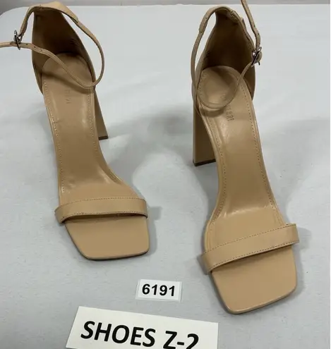 This is a pair of Forever 21 slip-on sandals size 10 in a beige color, featuring a strappy open toe... Show more
