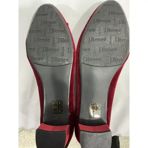 Elevate your shoe game with these stunning J. Renee Cameo pumps! The rich red color, velvet upper material and bow accent exude luxury and sophistication, perfect for any formal occasion. The slip-on style with a 1.5” block heel provides both comfort and style, while the low heel height adds a touch of elegance without sacrificing practicality. These size 10W heels are a must-have addition to any fashion-forward wardrobe. These shoes are NWOT!