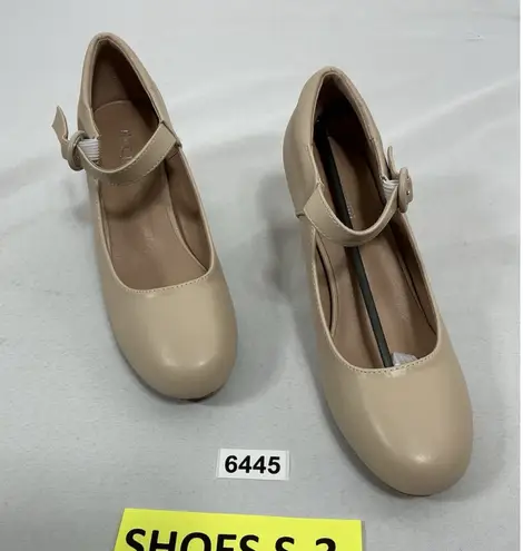 These Hene Jnel Mary Jane shoes in beige are a stylish addition to any woman's wardrobe. With a 2.5” block heel and round toe shape, these shoes offer both comfort and style. The ankle strap buckle closure adds a touch of sophistication, while the mid heel height provides a trendy and elegant look. Made of faux leather, these shoes are durable and versatile, perfect for various occasions from casual outings to more formal events. These shoes are NWOT!