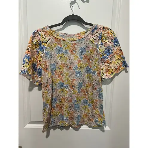 The Women's Loft Petite Hydrangea Eyelet Flutter Sleeve Tee is a stylish blouse made from 100% cotto... Show more