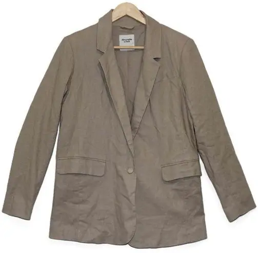Women's Abercrombie & Fitch Tan Linen Cotton Single-Breasted Notched Blazer Suit Coat Jacket Size Me... Show more
