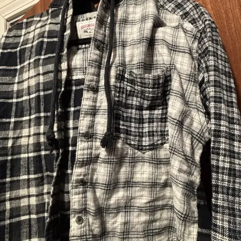 . Good condition! Size Medium. Black,gray, white plaid button down with a drawstring hoodie. One che... Show more