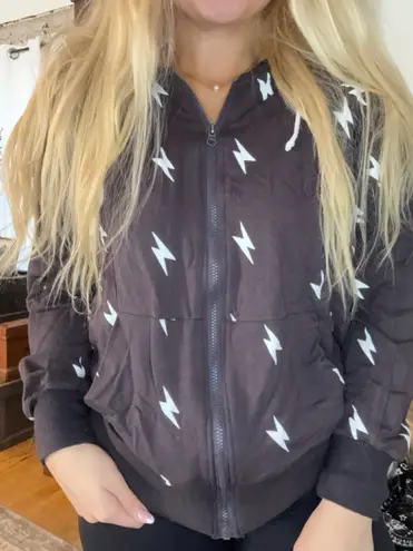 Women's Black Lightning Bolt Zip Up Hoodie Large - $33 - From Kayla