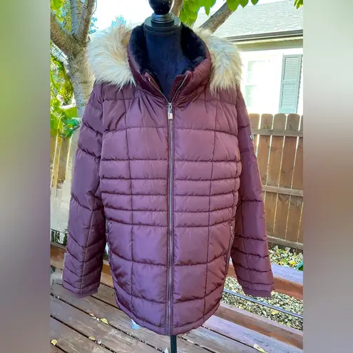 Soft,fluffy, lightweight, warm and very comfy to wear CALVIN KLEIN puffer jacket in pretty eggplant... Show more