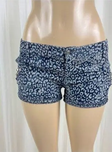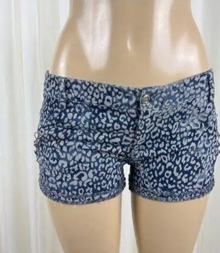 Cheetah Print and silver stud accents mini shorts Functional side and back pockets Frayed hem, zippe... Show more