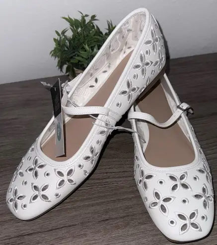 Chic white flats with floral cutout design. Comfortable and stylish for everyday wear.