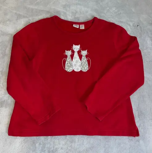 Women's Holiday Sequin Cat Sweatshirt XL Red - $17 - From Rachel