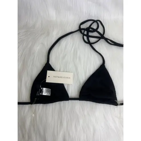 NWT Sexy bikini style top in a soft polyester fabric. Long neck and back tie strings. Fits size A to B cups Not made of traditional swimwear fabric blend but could be worn to beach. Perfect for nightclubs, festivals summer outings and more.