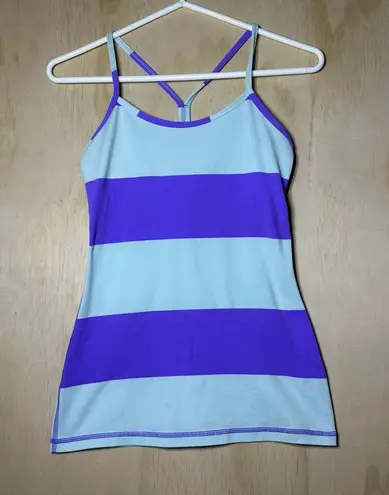 The Women's Lululemon Power Y Tank in Luon Light Size 4 with a bold stripe in Power Purple is design... Show more