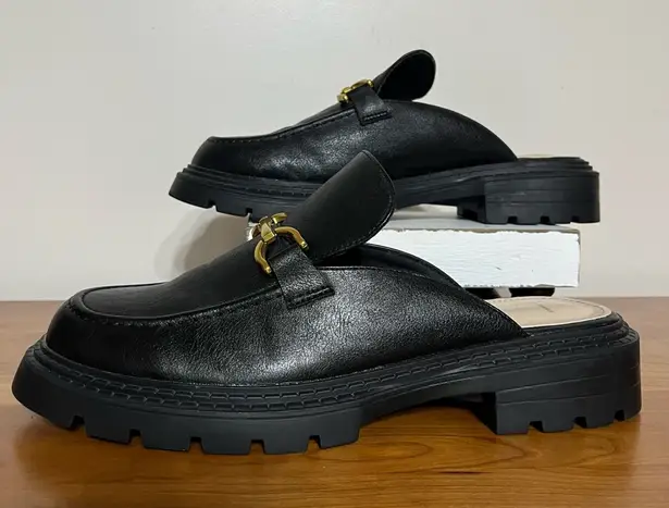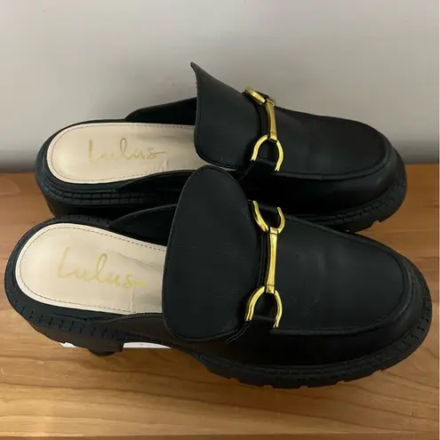 Women’s Lulus Ranae slide on loafers black with gold horsebit hardware detailing Size 10 Great pre o... Show more