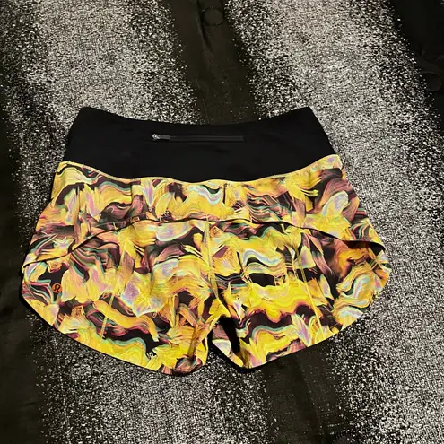 Womens sz6 Lululemon Speed Up Shorts "Inflected Highlight Yellow Multi/Black". The most gorgeous hol... Show more