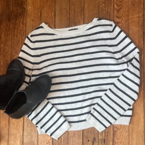 Stay stylish and comfortable with this chic black and white striped sweater. Perfect for any casual... Show more