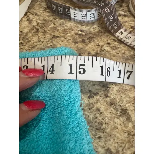 This pre-owned Theory women's mini skirt in turquoise is size S/P. It is constructed from a knit ble... Show more