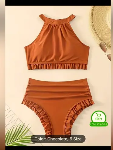 Women’s XL Chocolate Ruffle high waisted Bikini Set NWOT Brown - $16 - From candice