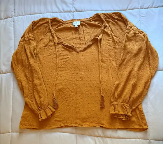 Wonderly Mustard Yellow Textured V-Neck Top Size XL With Tassels Brown - $20 - From Rema
