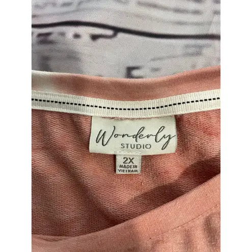 This Wonderly tie-dye terrycloth top is a comfy and stylish addition to your wardrobe! Featuring: - Soft terrycloth fabric - Eye-catching tie-dye pattern in pink and white - Short sleeves for a relaxed fit - Women's size 2X - Perfect for casual wear or lounging at home! This gently used top is in excellent condition and ready for its new owner. Don't miss out on this adorable and unique piece!