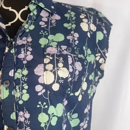 Woolrich Blue Printed Cap Sleeve Button Front 100% Cotton Blouse Size Medium - $25 - From Sara
