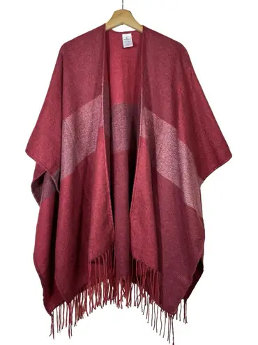 Woolrich Poncho Wrap‎ Shawl One Size Red Colorblock Fringe Cover Up Cardigan - $16 - From McKinley