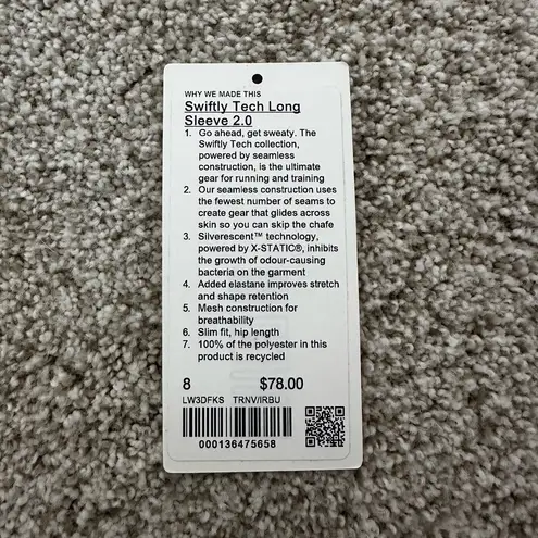 Worn once Lululemon Long sleeve swiftly tech size 8 Dark blue color