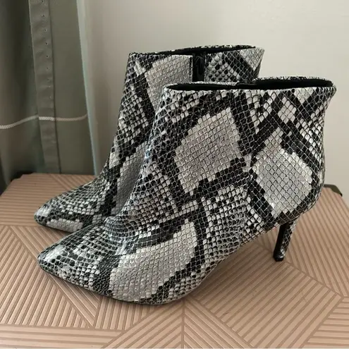 Worthington Heeled Ankle Booties Faux Snakeskin Gray Black White Lorna Business Casual Womens Size:... Show more