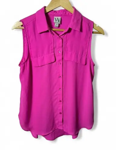Brighten up your wardrobe with this vibrant hot pink sleeveless button-down blouse from Worthington.... Show more