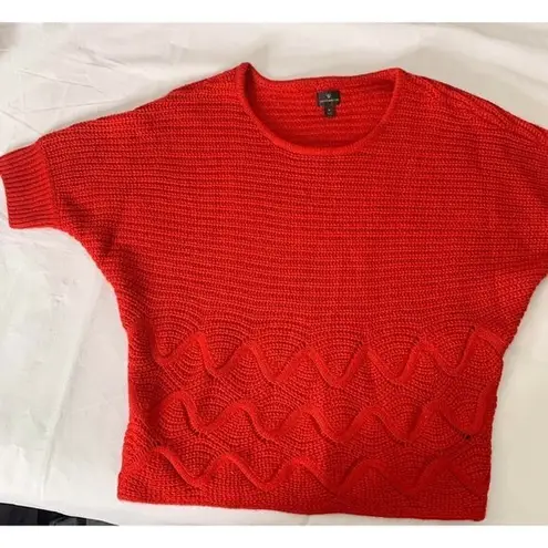 NEW WITHOUT TAG! Worthington Red short dolman sleeve sweater Bulky knit WAVE Designs at bottom Boatn... Show more