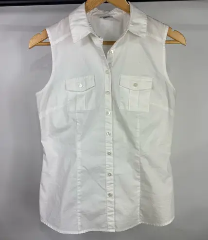 Worthington Woman's Stretch Sleeveless Button Up Blouse Front button closure pockets 65% cotton, 30%... Show more