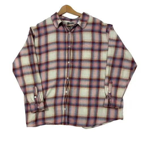 Wrangler Wrancher Flannel Button Down Shirt Womens 3X Burgundy Pastel Plaid Western Brand: Wrangler... Show more