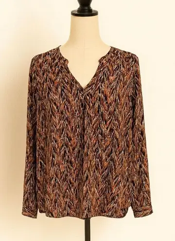 Xhilaration Abstract Multicolor V-Neck Blouse | Size M | Long Sleeve High-Low Hem Stylish and light... Show more