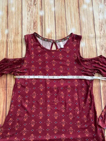 Very nice and comfortable Xhilaration Women's Burgundy Printed Peasant Tunic Top, Cold Shoulder, Siz... Show more