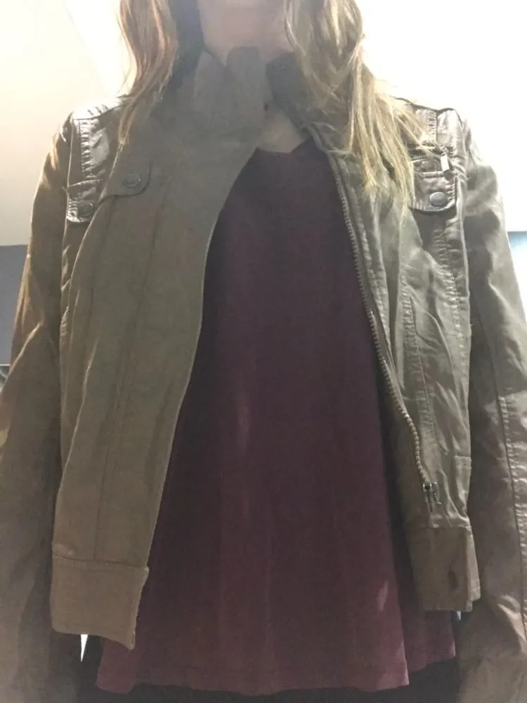 Really cute jacket, fits more like a small then a large! Size runs small.