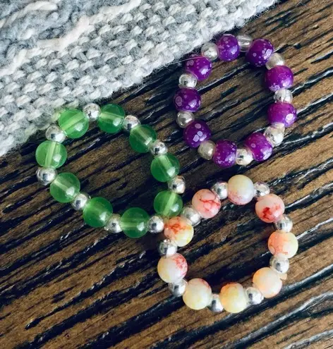 Y2K 90s set of 3 boho stretchy stackable beaded elastic rings - $10 - From Melanie