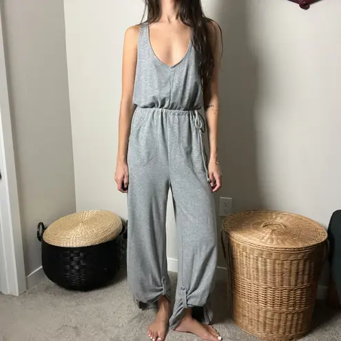 y2k free people beach gray boho oversized relaxed baggy cinched waist wide leg jumpsuit onesie size... Show more