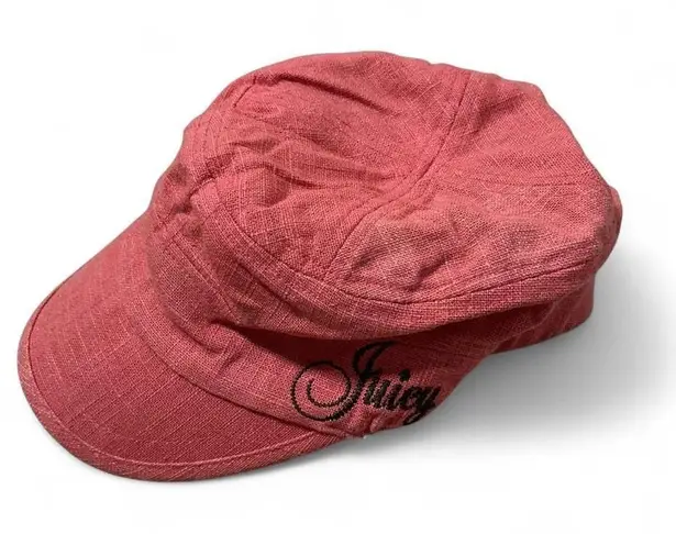 A stylish pink linen blend newsboy cap by Juicy Couture. This cap features the signature Juicy Coutu... Show more