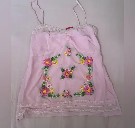 Y2K Pink Floral Embroidered Sequined Cami and Scarf Set Size L - $62 - From Ada
