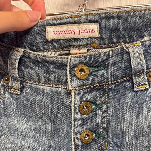 Low rise Y2K flare leg Tommy Hilfiger jeans. Lots of life left but the bottom hem has some fraying.... Show more