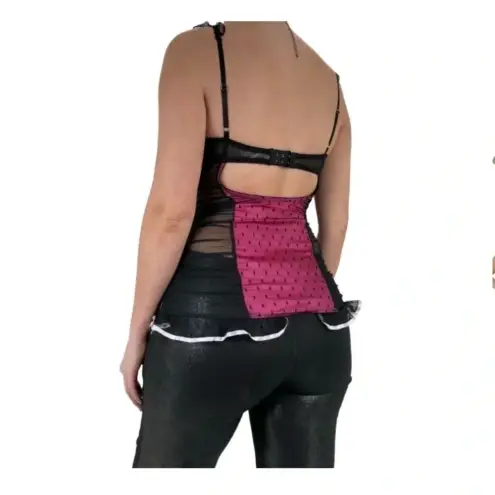 Y2k Vintage Victoria's Secret Pink + Black Polka Dot Sheer Ruffle Bustier Top Stretchy Size 36c C... Show more