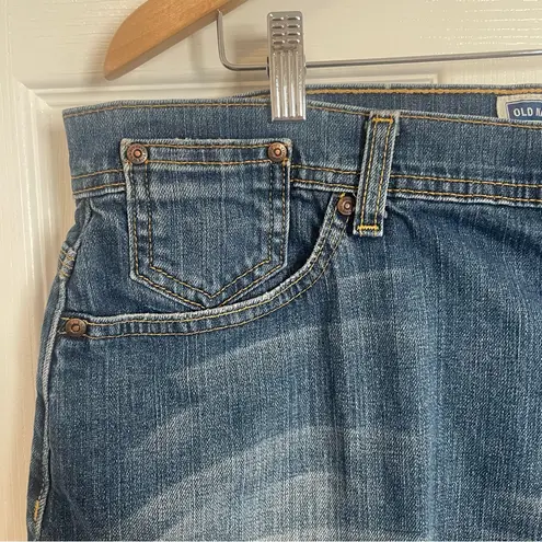 Y2K vintage jean skirt from Old Navy. Low rise. Medium blue wash. Embroidery detail on the back pock... Show more