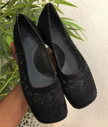 Y2K Whimsygoth dark academia Black suede leather ballet ballerina flats loafers square toe 1” platform wedges heels with cut out design-US Women 7 (true to size) #gothic Measurements in pics Excellent condition