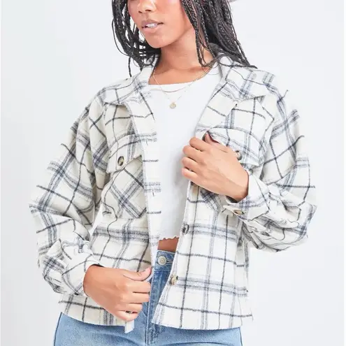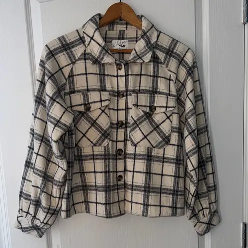 YMI WOMEN'S BOXY FIT CROPPED SHACKET CREAM+ GREY PLAID Size M Black Size M - $18 - From Aida