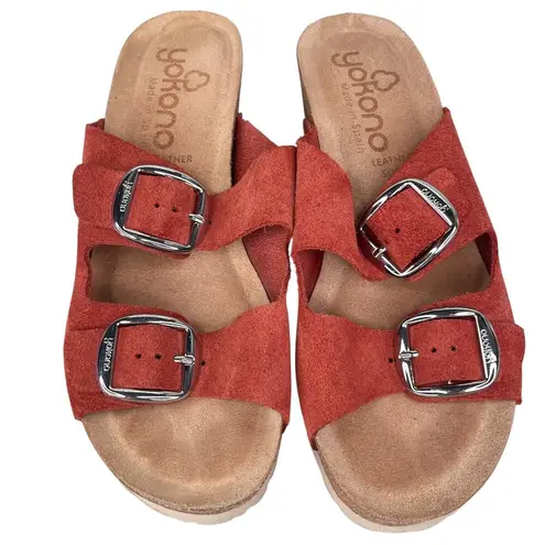 Yokono Double Band Wedge Cork Sandals Rust 6.5 Orange - $40 - From Kris