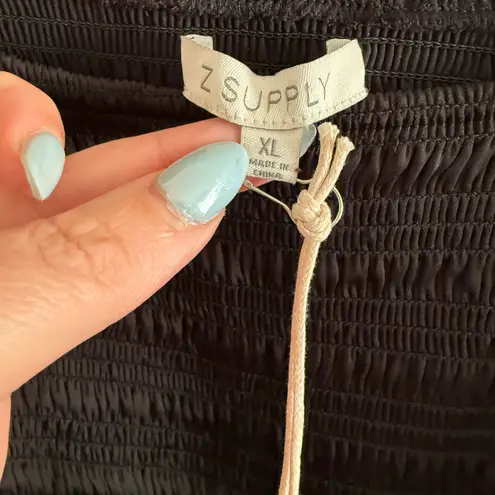 Z SUPPLY Black Wildes Black Satin Tiered skirt Smocked Midi Dress Smocked bodice Square neck Blouso... Show more